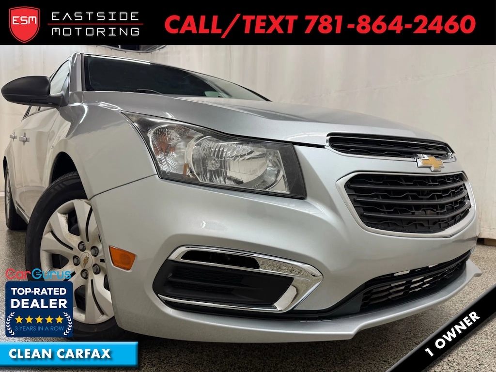 This SUPER CLEAN 2015 CHEVROELT CRUZE LS HAS A PERFECTLY CLEAN CARFAX, WITH NO ACCIDENTS. PERFECT COLOR COMBO, WELL EQUIPPED WITH BACK UP CAMERA, ALLOY WHEELS, BLUETOOH and more. READY FOR YOUR COMMUTE AND ENJOYMENT TODAY! AS A CARGURUS TOP RATED DEALER, THIS CAR HAS PASSED A 125 POINT MECHANICAL AND SAFETY INSPECTION TO ENSURE QUALITY CONTROL! RECENTLY SERVICED, AND READY FOR IMMEDIATE DELIVERY. ALL OF OUR VEHICLES QUALIFY FOR 125K MILES WARRANTY COVERAGE, ASK FOR MORE DETAILS. Easy financing available for all credit types, trade-in's welcome, and we also perform all registration services so we can get you driving as soon as possible. WALK AROUND VIDEO OR FACETIME / VIRTUAL SHOWING AVAILABLE UPON REQUEST, AND WE ALSO WE SHIP TO ALL 50 STATES!! CALL OR TEXT ANYTIME!!