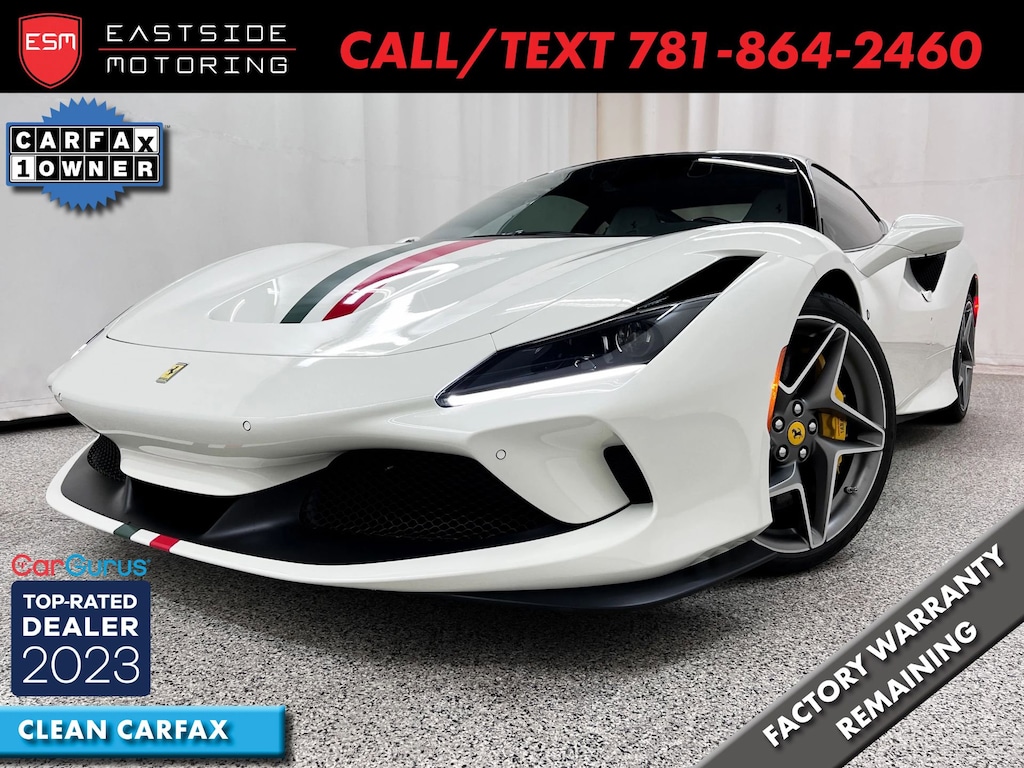 This spectacular 2022 Ferrari F8 Tributo is a 1-owner free from any accidents, has a spotless Carfax report, and boasts a wealth of features, including Carbon fiber steering wheel w/ built in shift lights, Red, white & carbon fiber 1 off interior design, titanium racing exhaust system, too many options to list. This is your chance to own something special.Please call to get the accurate options list from our sales team. With on-site professional detailing, we guarantee that your vehicle will be meticulously cleaned, polished and prepared for quick delivery.